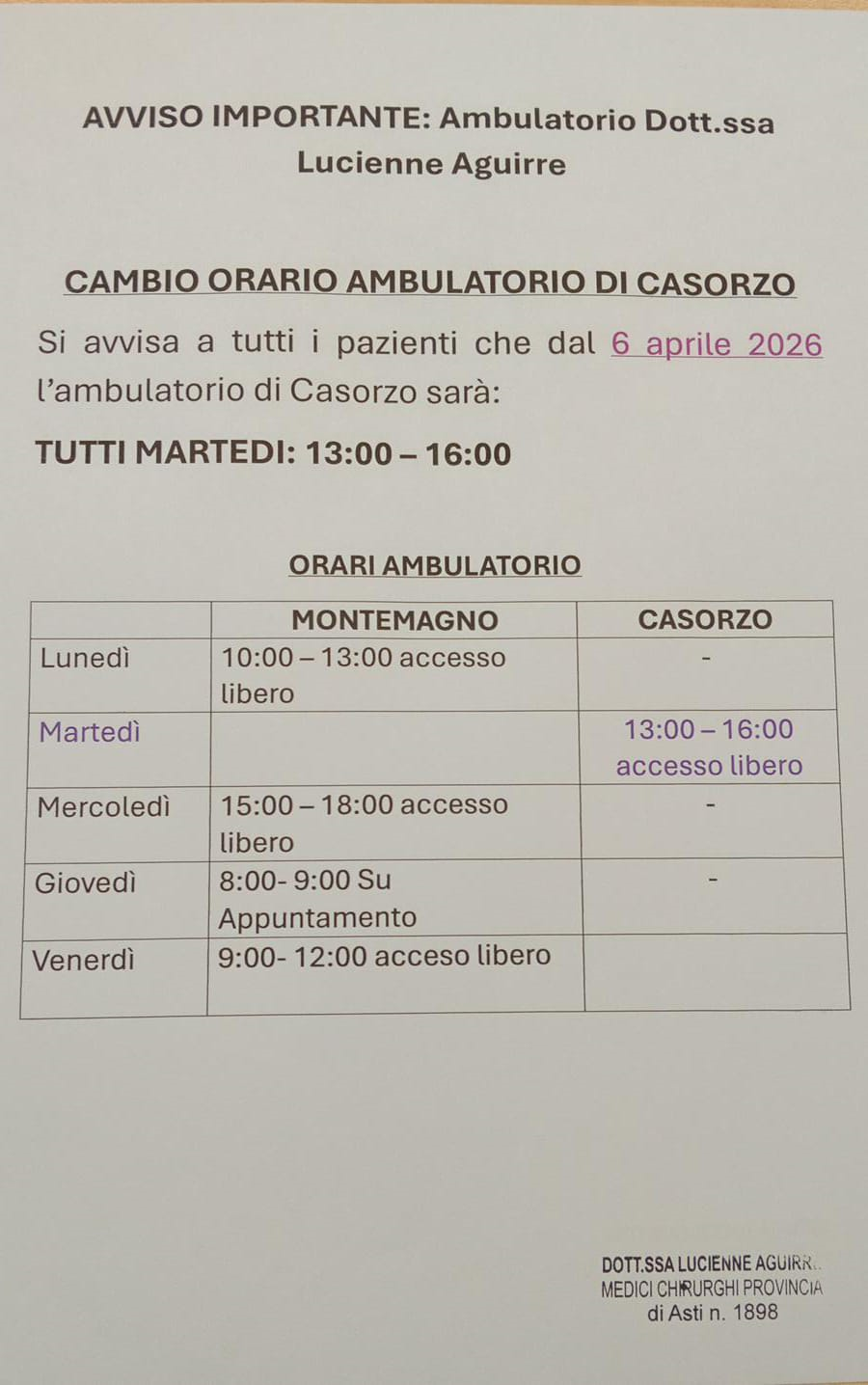 orari ambulatorio Dottoressa Aguirre Lucienne